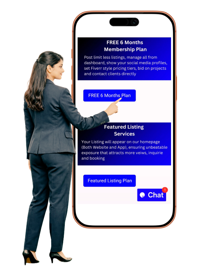 Register now for FREE! Select the Free plan! Start Listing. Only users under a Membership plan can list services.